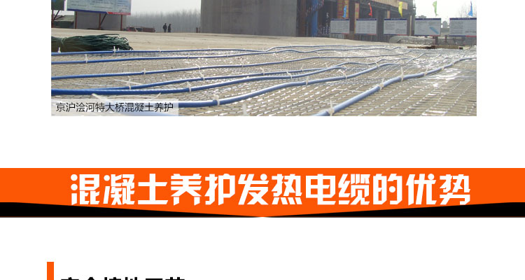 發熱電纜可以在新建筑的混凝土干燥與硬化中使用。縮短混凝土干燥時間,可以縮短 整個建筑工期,帶來很大的經濟效益。發熱電纜可以直接置于混凝土內,防止混凝土凍結,加速其硬化,即使在非常寒冷的季節,也可以三天就將模板撤掉。施工后期,重新接通發熱電纜電源,干燥整個建筑結構,并且在建筑過程中提供基本的供熱。